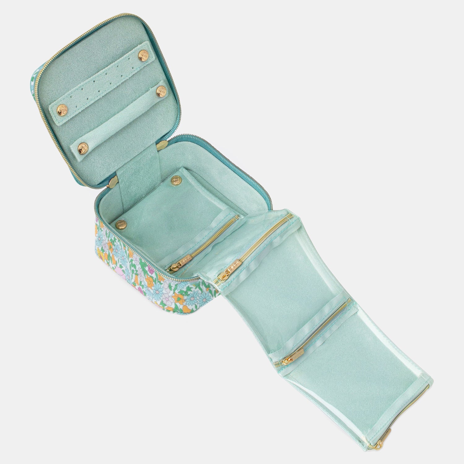 Made with Liberty Fabrics, the Tonic ‘Poppy’ Jewellery Cube is a patented design that keeps your cherished pieces safe and free from damage. Luxurious gold zips open to an inner detachable compartment with four individual zipped pockets with clear EVA windows, a ring holder and earring holder. Protect your precious pieces from tangles, scratches, dints, knots, and loss and place them where you can see them while you accessorise your outfit, storing at home, or while travelling.