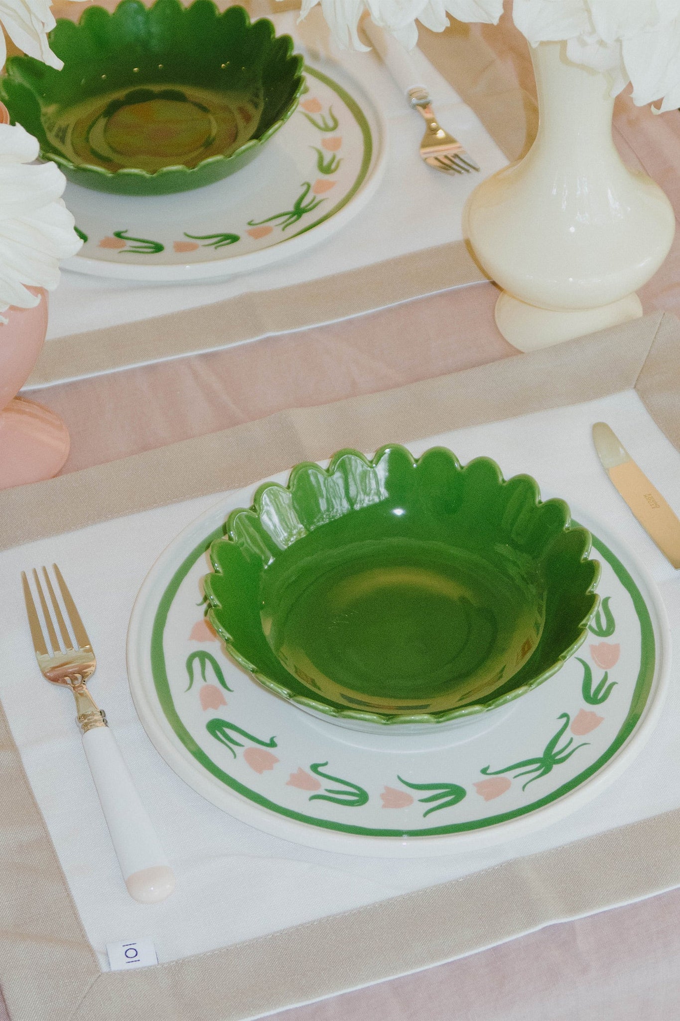 Elevate your sides with our In The Roundhouse scallop set in green.