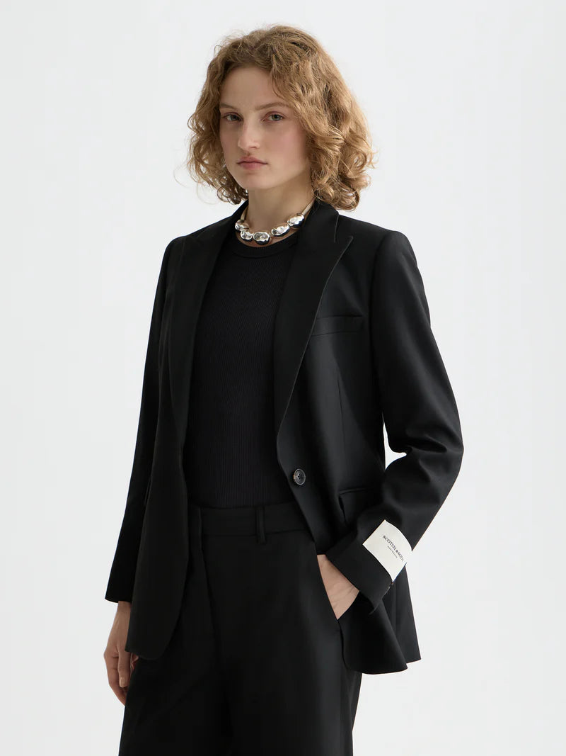 Elevate your wardrobe with our Scotch & Soda single-breasted fitted blazer. This sophisticated piece features a tailored fit that accentuates your silhouette, offering a polished and professional look. Whether you're dressing up for a business meeting or adding a chic layer to your casual outfit, this blazer is a versatile must-have for any fashion-forward wardrobe.