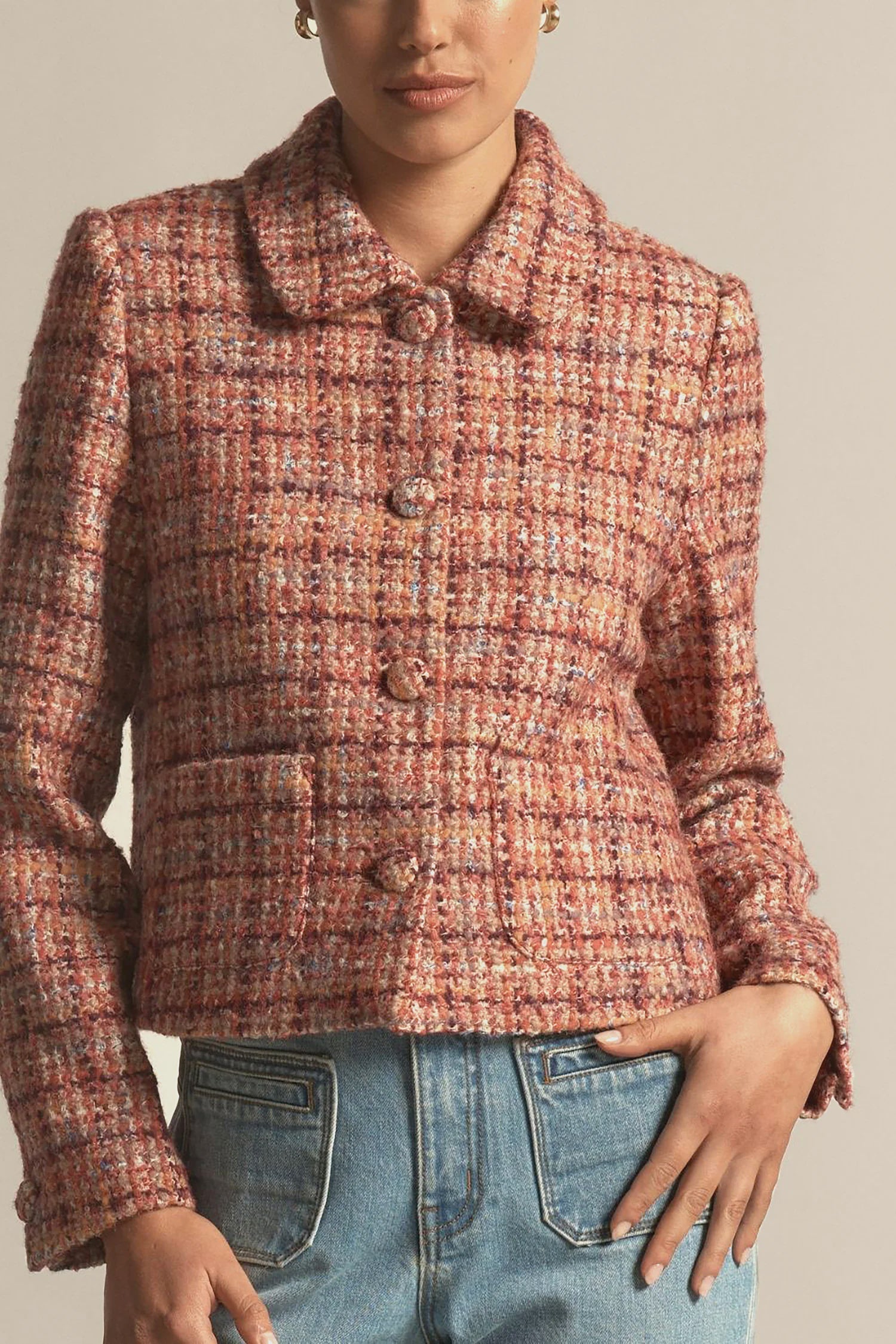 A beloved Zoe Kratzmann classic with parisian influence. The Plume Jacket in Berry Check brings softness, texture and timeless proportion to everyday dressing.
