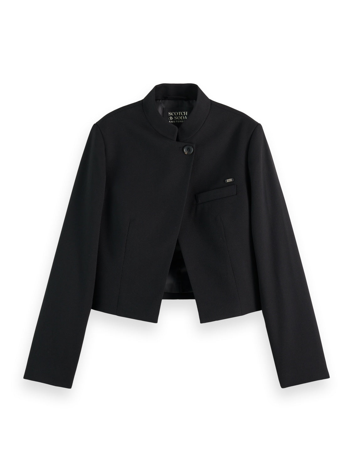 Elevate your wardrobe with our Scotch & Soda cropped tailored blazer, featuring a unique asymmetrical top button detail. This blazer combines modern design with classic tailoring, offering a stylish and versatile piece that can be dressed up or down.