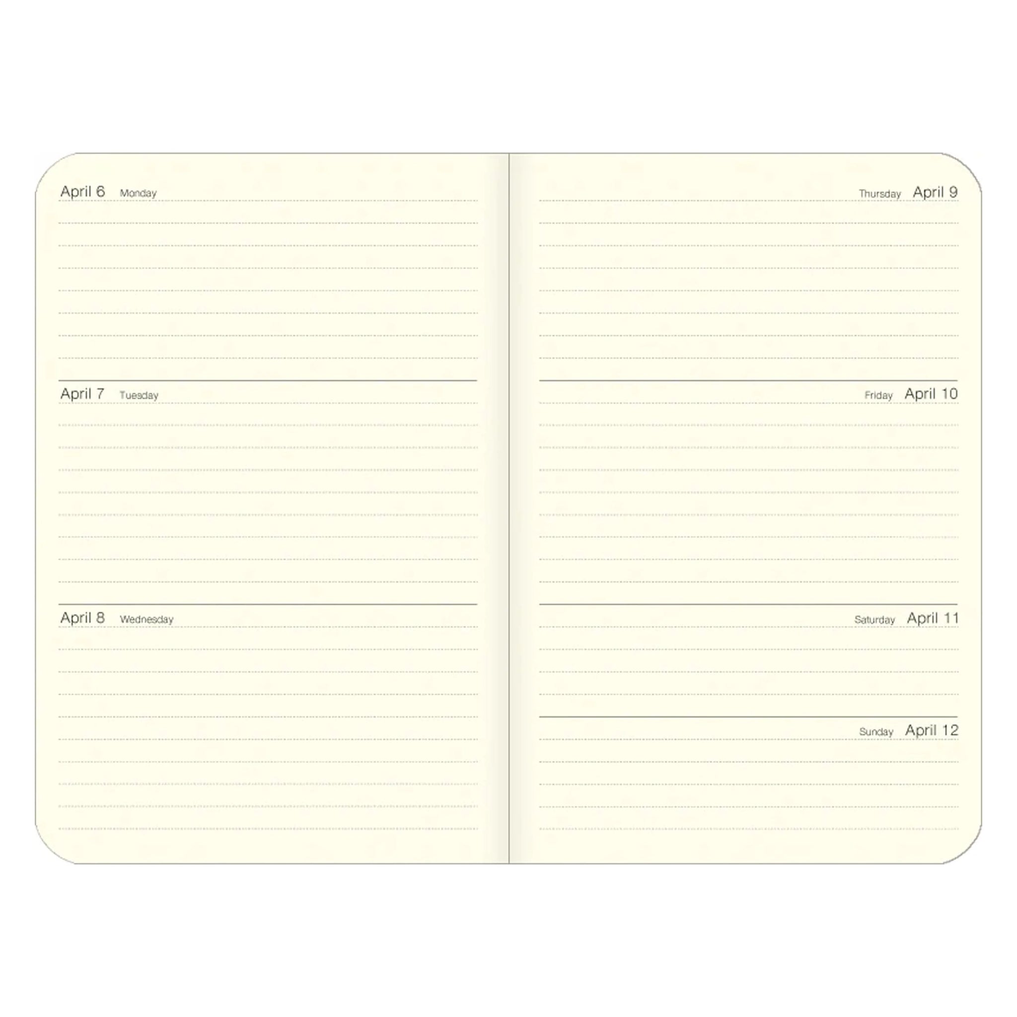 - Functional Layout – Week-at-a-glance pages, full-month views, address & notes sections.