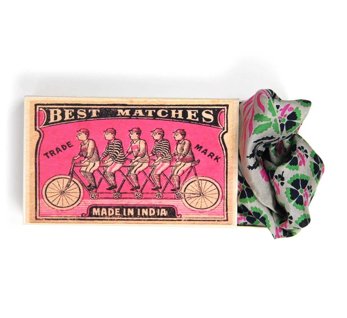 These Mini Scarves from Les Belles Vagabondes make an original gift, they can be worn around the neck, around the wrist, as a headband, in a bun or even around the bag. They are drawn by hand in France and printed by hand in India. They have an exceptional finish with a hand-rolled hem. They are sold in the cutest box, inspired by vintage matchboxes.