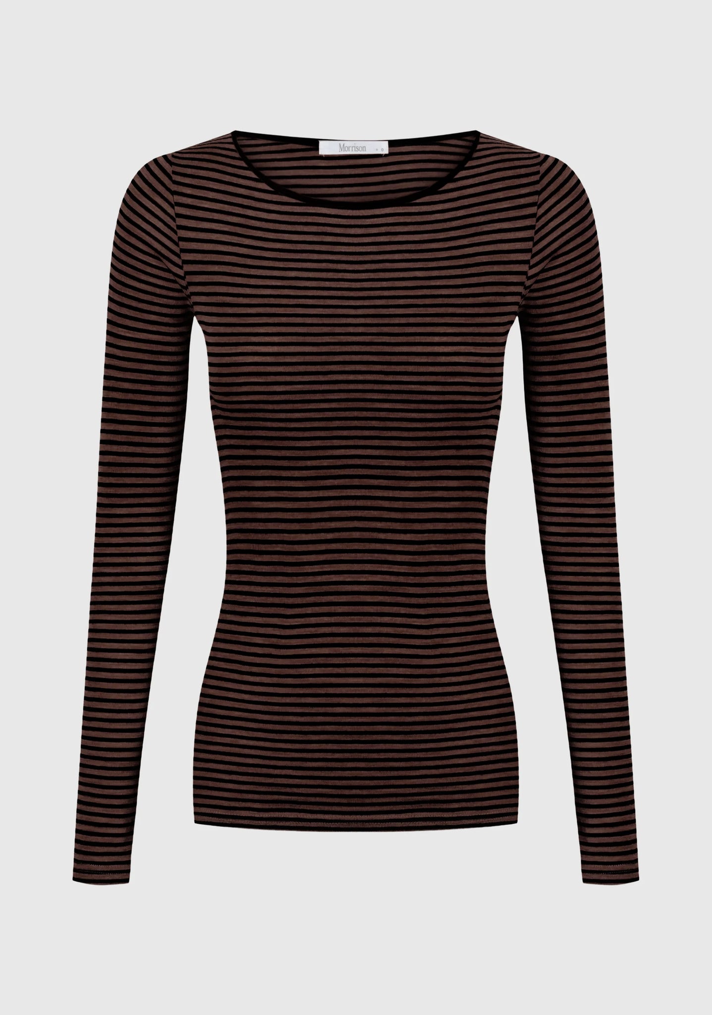 Home/Morrison/Morri Merino Stripe Round Neck-Espresso & Black