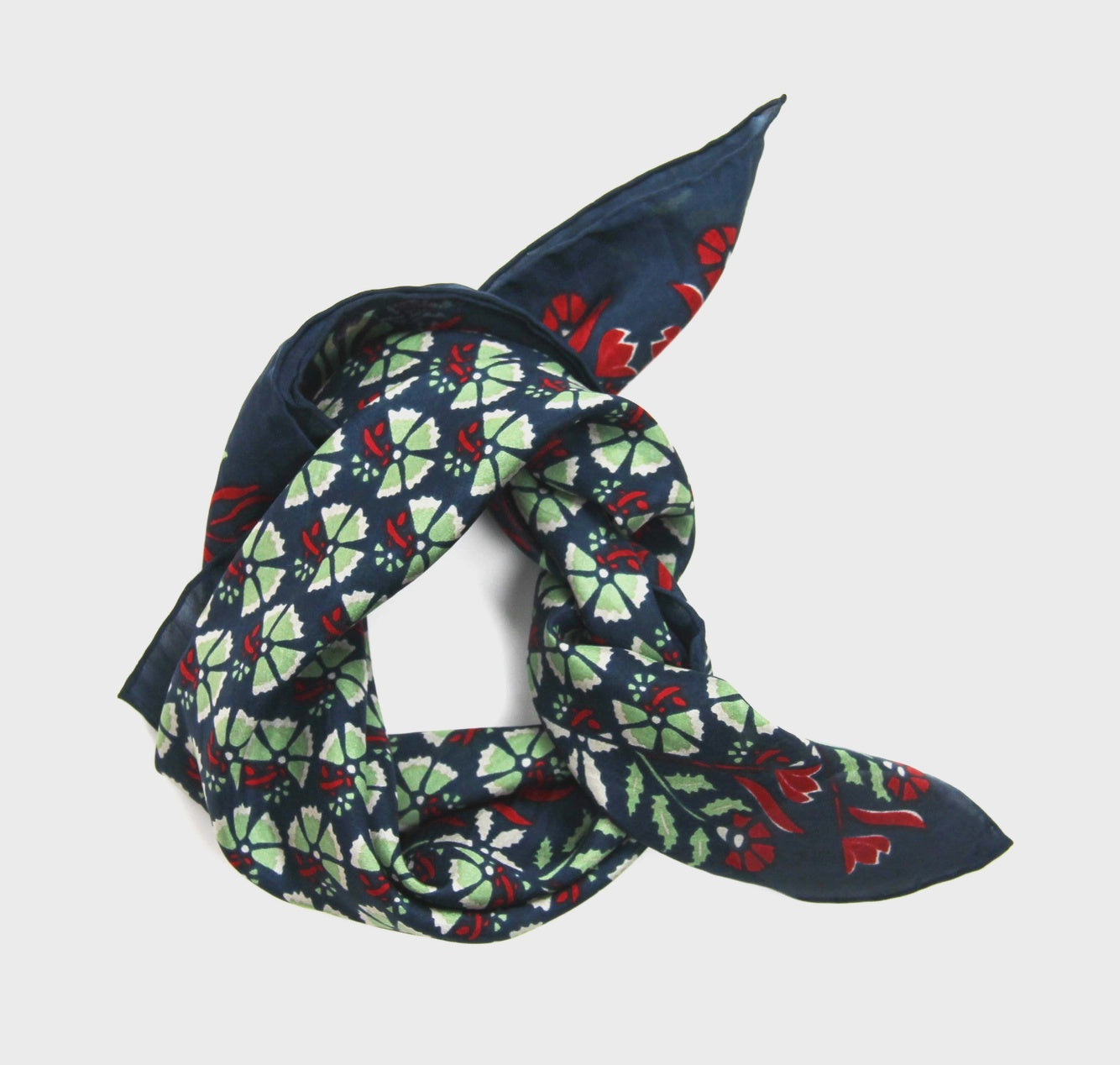 Mini Scarves make an original gift, they can be worn around the neck, around the wrist, as a headband, in a bun or even around the bag... They are drawn by hand in France and printed by hand in India. They have an exceptional finish with a hand-rolled hem. They are sold in a box inspired by vintage matchboxes.