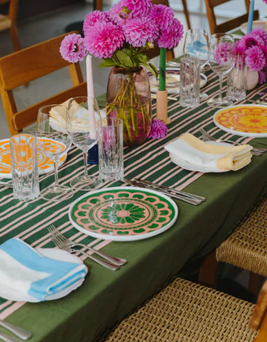 Our In The Roundhouse Green & Pink Flower Plate is a fun statement plate to add to your collection and style in with whites!