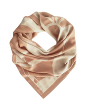An abstract pattern with two shades of tan, this is a very luxurious looking scarf.