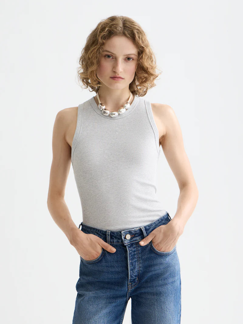 Our edgy Scotch and Soda ribbed racer tank is the perfect mix of comfort and style. Crafted with a blend of cotton and stretch, this tank hugs your curves in all the right places. Wear it as a sleek layering piece under a leather jacket for a night out, or pair it with high-waisted jeans and sneakers for a casual daytime look. No matter how you wear it, this tank is a must-have for any fashion-forward individual.