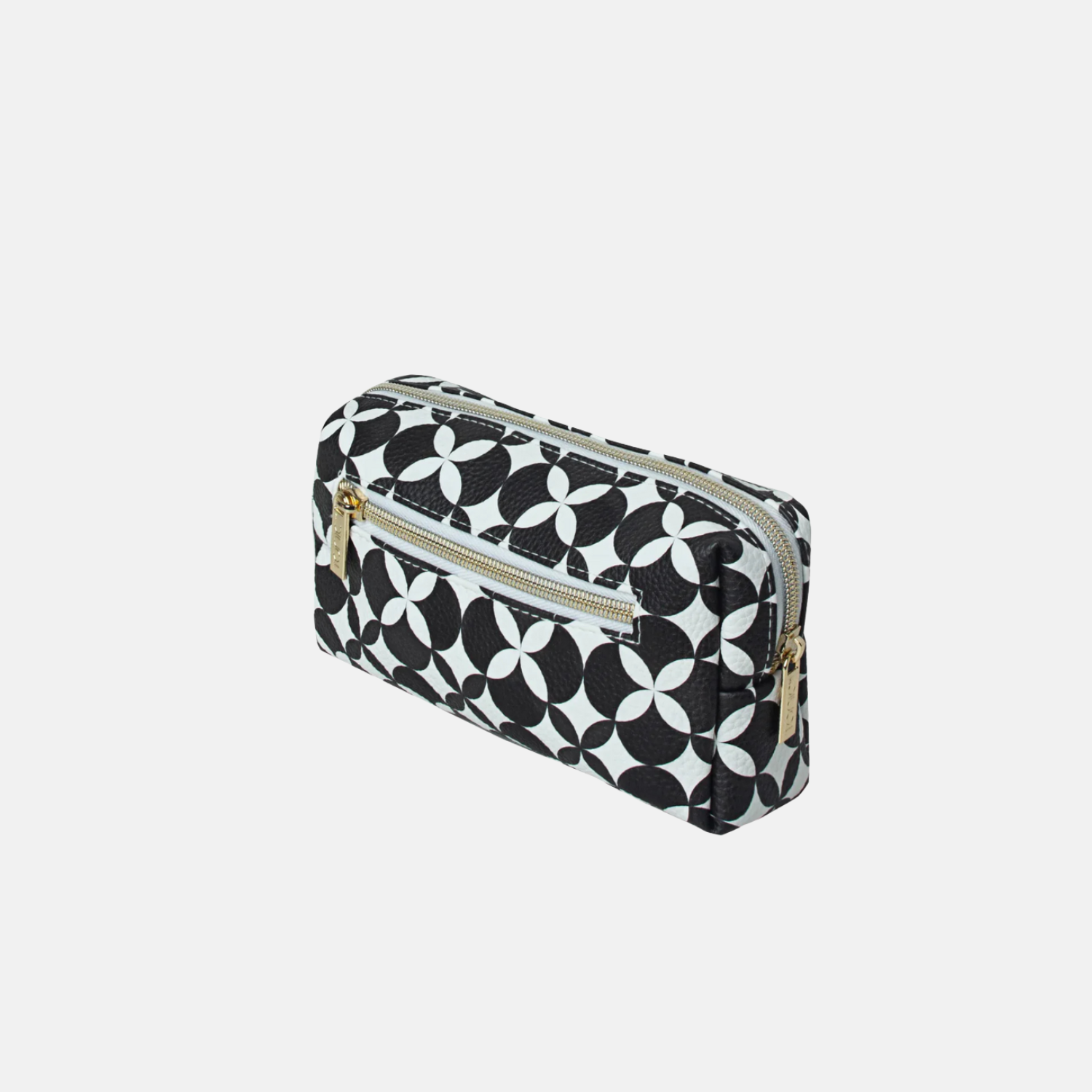 Keep your makeup essentials handy throughout the day with the Iconic medium makeup bag. Crafted from easy care PU, this cosmetic bag is the perfect size for your day-to-day needs or to carry on a flight. The bold black and white geometric design is based on the Tonic logo and sized to fit the shape perfectly.