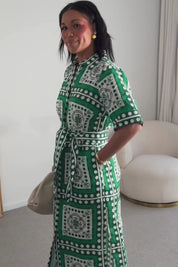 A vibrant statement print makes the roam dress perfect for resort styling or everyday luxury.