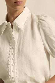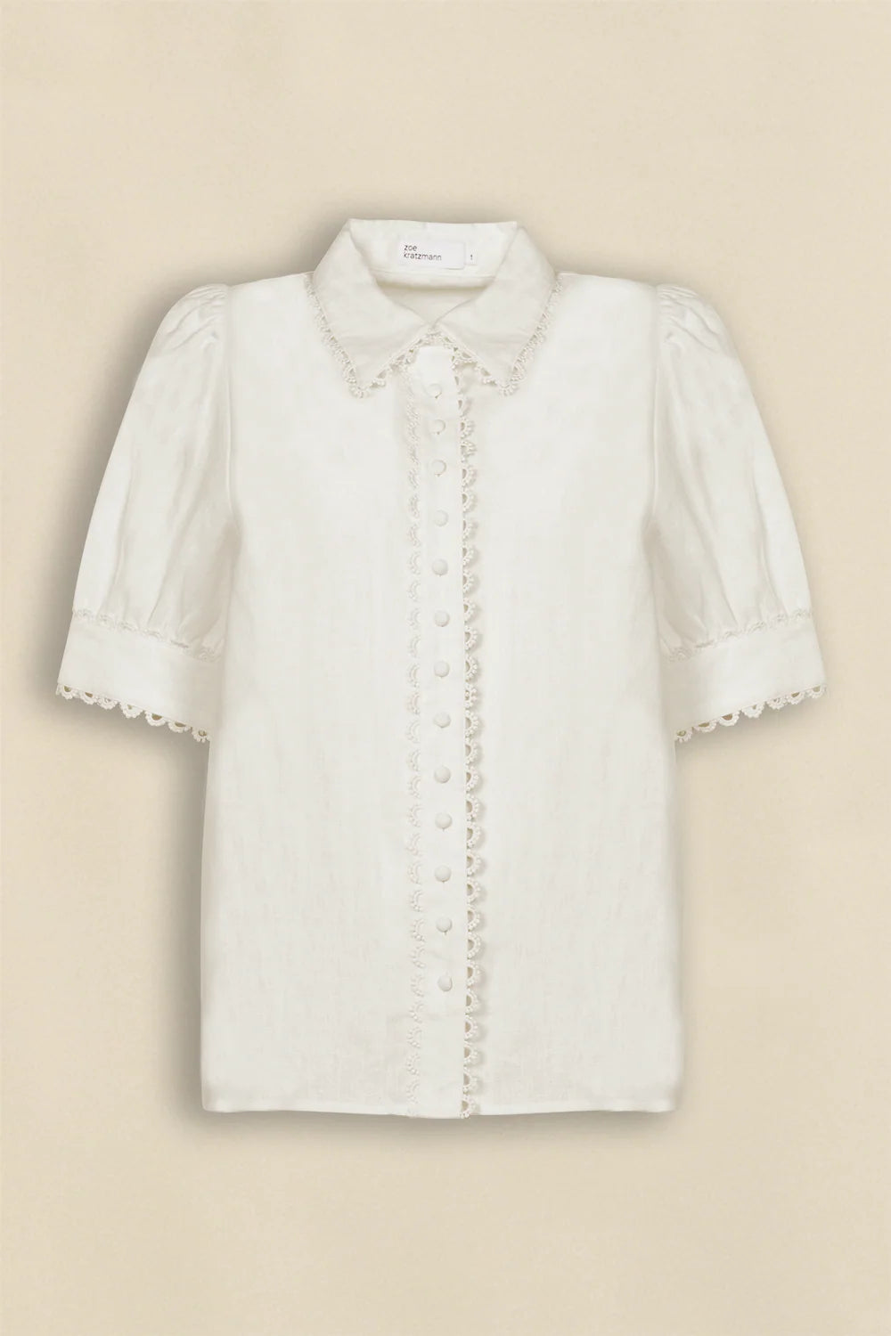 Polished with feminine nuance, the Tether Top from Zoe Kratzmann is detailed with scalloped lace and classic tailoring.