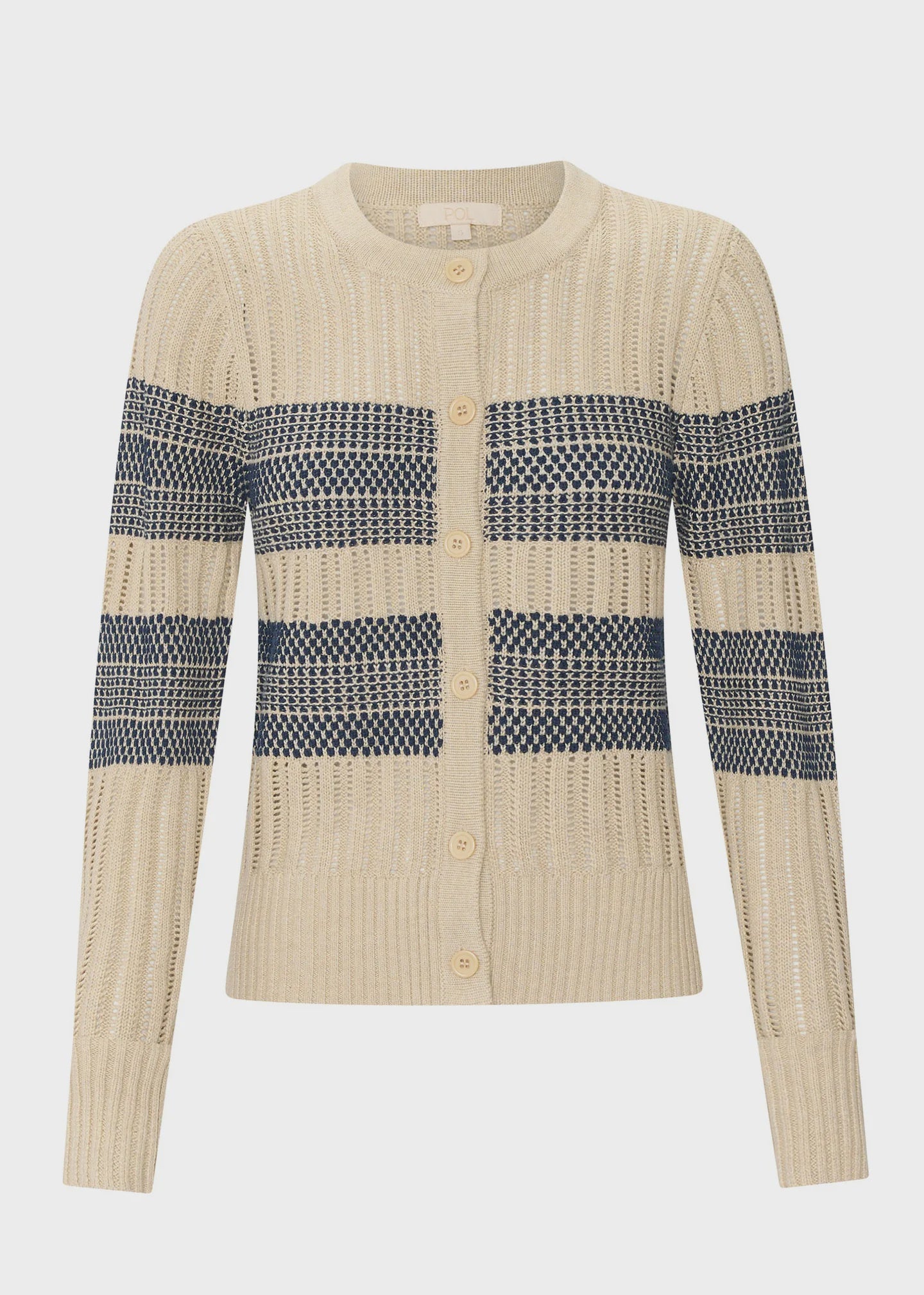 Made from breathable cotton with pointelle ribbed detailing, the Sable Striped Cardigan from POL is an elevated lightweight layer for transseasonal dressing.